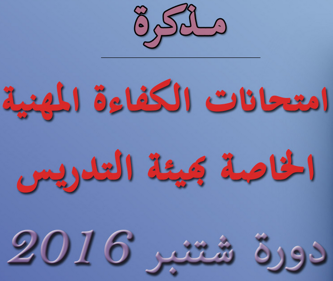 اقرأ المزيدمذكرة 16-067 بتاريخ 28 يونيو 2016 حول تنظيم امتحانات الكفاءة المهنية الخاصة بهيئة التدريس - دورة شتنبر 2016.