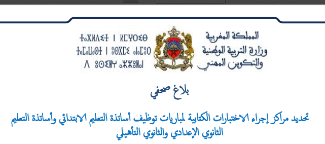 تذكر وزارة التربية الوطنية والتكوين المهني المترشحات والمترشحين لمباريات توظيف أساتذة التعليم الابتدائي وأساتذة التعليم الثانوي الإعدادي وأساتذة التعليم الثانو